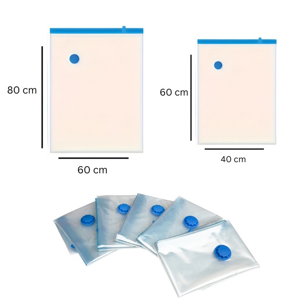 Свършва ви мястото в гардероба? Трудно побирате всичко в куфара? Вакуумните пликове за съхранение VACKBAGS компресират вашите обемни вещи с до 80%, като ви дават моментално място за важните неща. Просто опаковайте дрехите или спалното бельо, запечатайте плика и използвайте всяка домашна прахосмукачка, за да изтеглите въздуха – отнема по-малко от 60 секунди. Повече място, по-малко бъркотия, никакви проблеми.