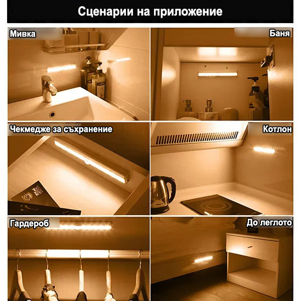 Залепете я до вратата на банята или вътре в нея. Активира се, когато се приближите, осигурявайки достатъчно светлина за нощни посещения, без силната яркост на горните лампи.