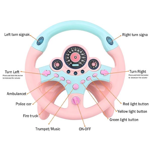 Проектиран със забавни звуци, мигащи светлини и лесни за натискане бутони, този волан пленява малките шофьори и ги въвлича във въображаема игра.