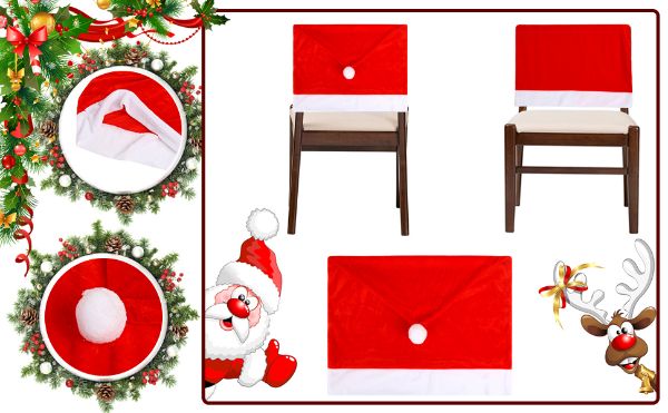 Опаковката включва: Комплект от 4 броя покривала за трапезни столове с червена шапка.