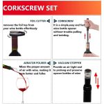 Този комплект 4-в-1 включва отварачка с въздушна помпа, нож за фолио, аератор за наливане и вакуумна тапа за безупречно винено изживяване.