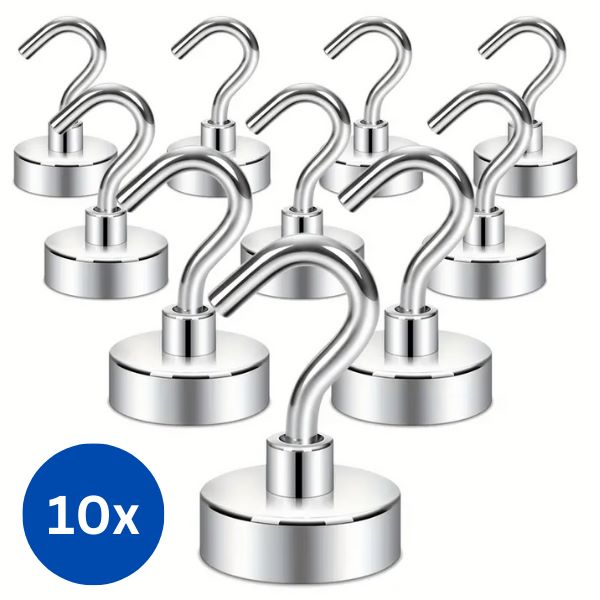 Нашият комплект от 10 магнитни кукички може да издържи до около 10 кг всяка, което ги прави идеални за организиране на гаражни инструменти, кухненски принадлежности, ключове, кърпи и др.