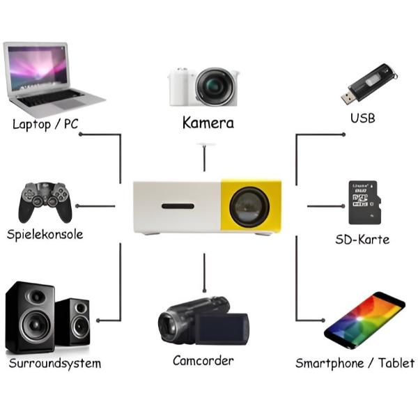 С множество портове като USB, HDMI и AV този проектор гарантира забавление, независимо какво устройство използвате.