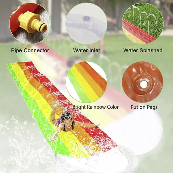Водната пързалка с разпръсквателна система е отличен продукт за забавление на открито.