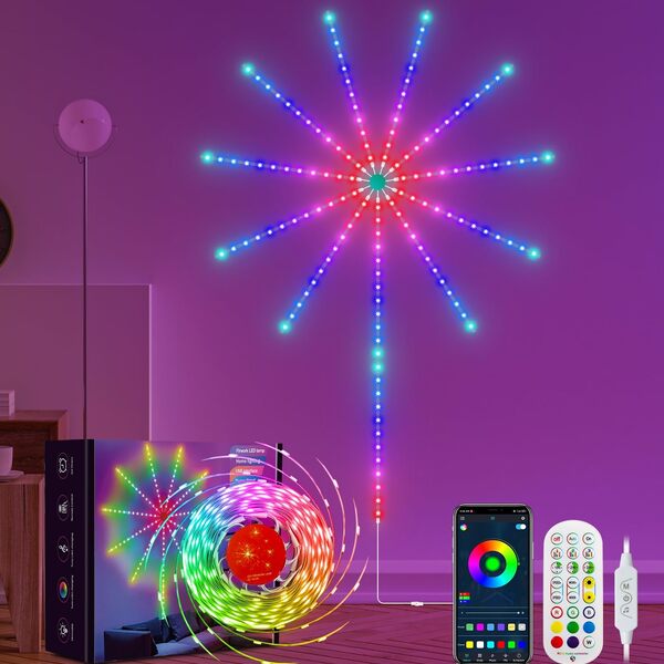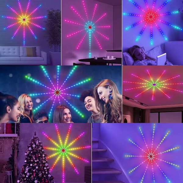 Осветете всяко пространство с тези цветни светлини фойерверки, които моментално карат празненствата ви да се чувстват специални и магически. Регулирайте с бутона на кабела, с дистанционното управление или с приложението. Синхронизира се с музика за енергична, жизнена атмосфера!