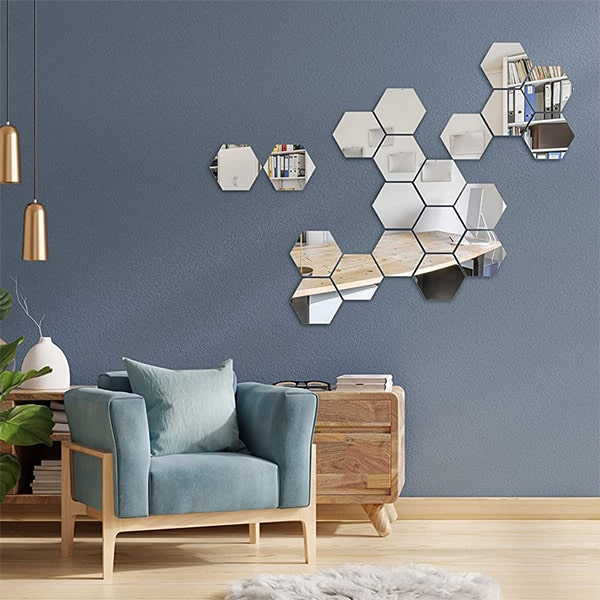 Тези стикери са изработени от първокласен отразяващ материал, който точно възпроизвежда външния вид на истинските огледала. С шестоъгълната си форма всеки стикер без усилие внася съвременен стил в стените ви.