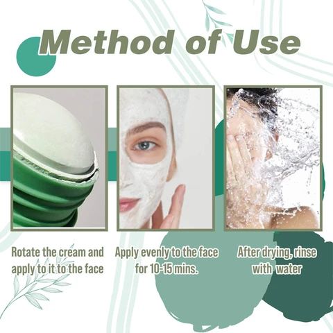 Нанесете равномерно върху сухо лице, като избягвате устните и клепачите. След нанасяне оставете за 10-15 минути да изсъхне. Изплакнете с топла вода и масажирайте внимателно в кожата.