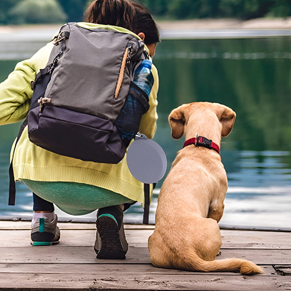 Тази сгъваема купичка организира храната и водата на вашия домашен любимец. Лека и компактна, тя лесно се закрепва към чанти и колани с включения карабинер. Идеална за приключения на открито, туризъм, къмпинг и ежедневна употреба.