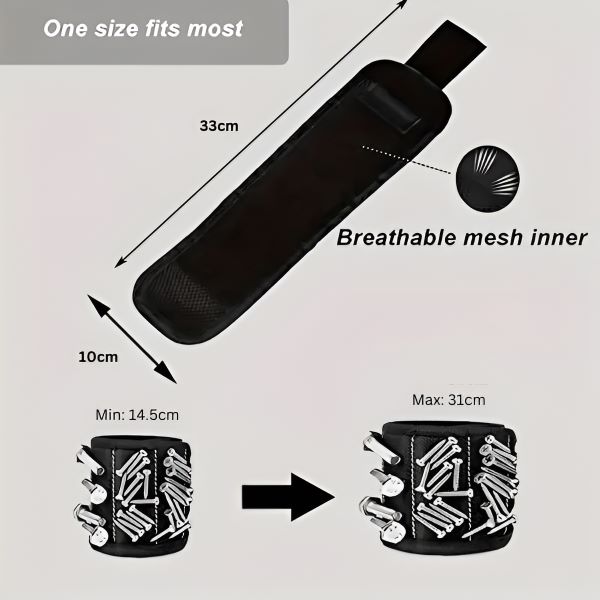 Мощните магнити в тази гривна лесно се увиват около китката ви, като държат малки метални предмети като винтове, пирони и болтове точно на една ръка разстояние.