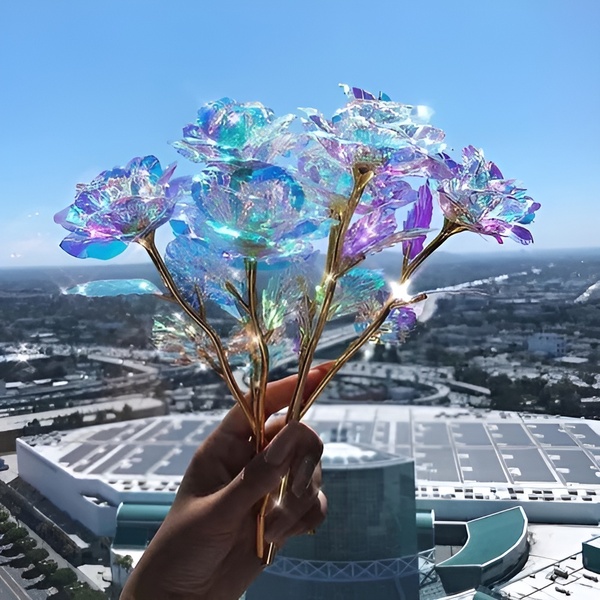 Всяка роза е изработена с преливащо, холографско покритие, което красиво блести на светлината, създавайки блясък, подобен на галактика, който е просто хипнотизиращ.