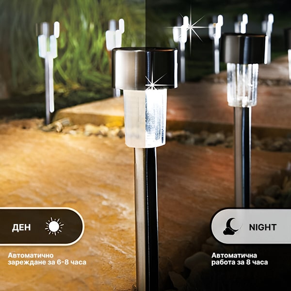 Насладете се на добре осветени пътеки и градини след залез с SOLSTRE. Те автоматично се включват през нощта, подобрявайки безопасността и атмосферата.