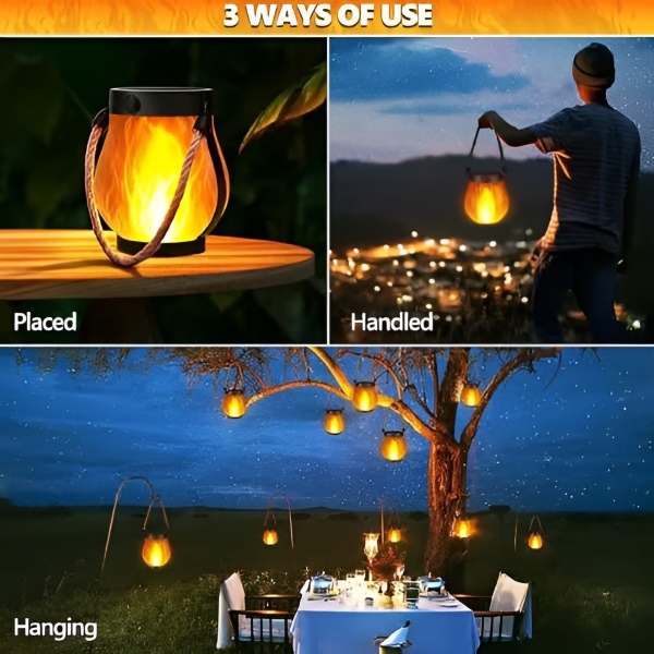С регулируемо конопено въже тези фенери могат да бъдат окачени или поставени навсякъде – в градината, на терасата, по пътеката или върху маса. Те са леки и удобни за пренасяне, идеални за всяко събитие на открито.