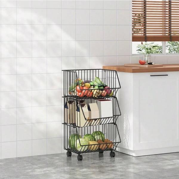 Перфектна за съхранение на зеленчуци, плодове, сухи продукти и други, тази количка ви помага да държите всичко на леснодостъпно място.