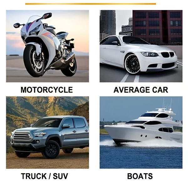 Използвайте CARCOAT за автомобили, лодки, мотоциклети, кемпери, всъдеходи и др. Той е безопасен за всички повърхности, включително боя, пластмаса и стъкло.
